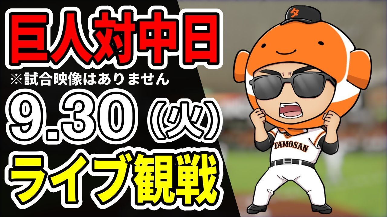 【巨人ライブ】9/30 巨人 対 中日ドラゴンズをみんなで応援するライブ!巨人戦を生配信中!!#読売ジャイアンツ
