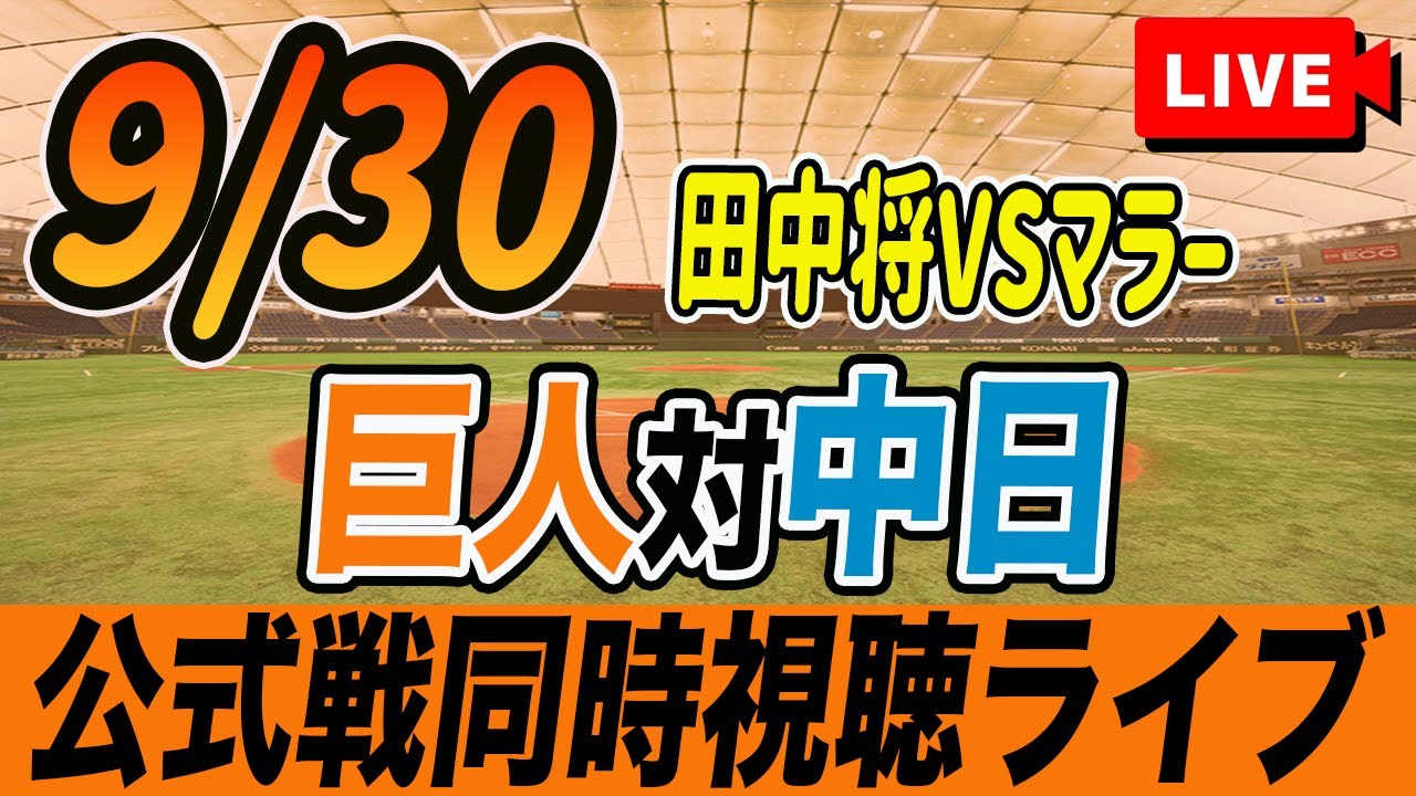 【巨人/同時視聴】9/30巨人対中日ドラゴンズ24回戦を観戦しながら雑談しようライブ配信 田中将大日米通算200勝チャレンジ予告先発:G田中将大 Dマラー 読売ジャイアンツ プロ野球観戦ライブ