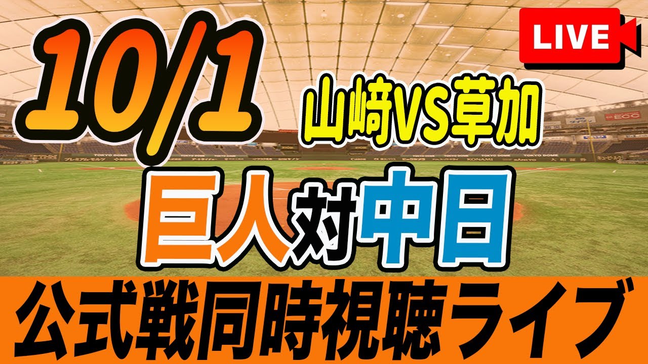 【巨人/同時視聴】10/1巨人対中日ドラゴンズ25回戦を観戦しながら雑談しようライブ配信 予告先発:G山﨑伊織 D草加 勝 読売ジャイアンツ プロ野球観戦ライブ