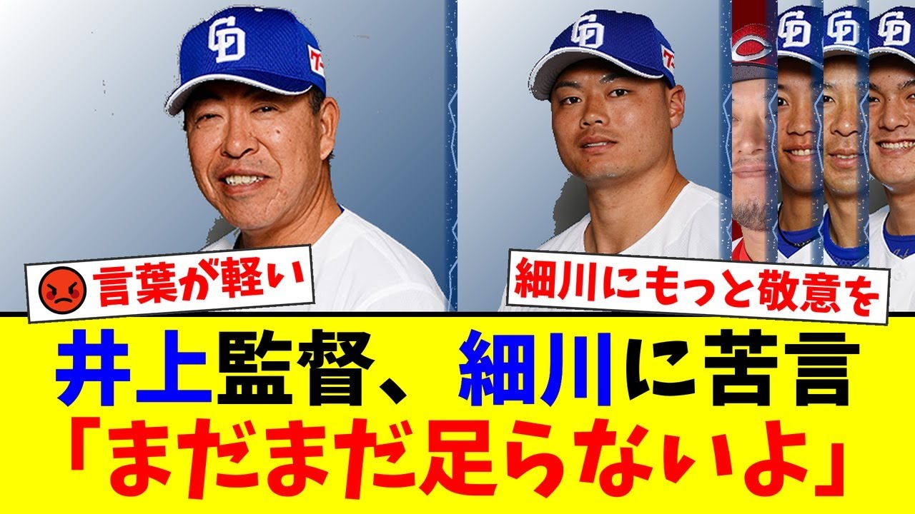 中日の井上一樹監督が、3年連続20号ホームランを達成した細川成也選手に対し「まだまだ足らない」とコメントし、物議を醸しています。