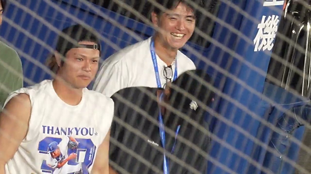 【森唯斗】引退セレモニーに駆け付けた甲斐野央選手らと握手(2025.9.29/横浜スタジアム)
