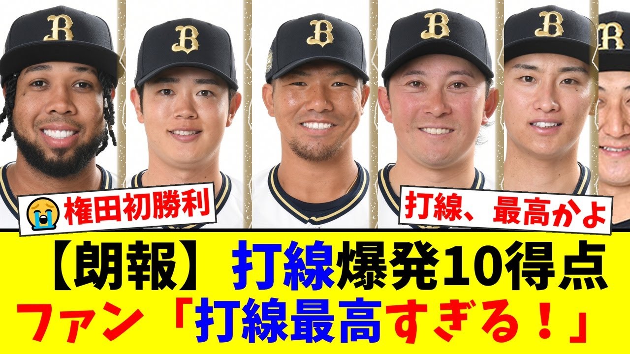 オリックス打線が14安打10得点と大爆発で4連勝!頓宮裕真の13号、太田椋の9号HRが飛び出し、権田琉成はプロ初勝利!ファンからは歓喜の声が上がる【プロ野球ファンの反応】