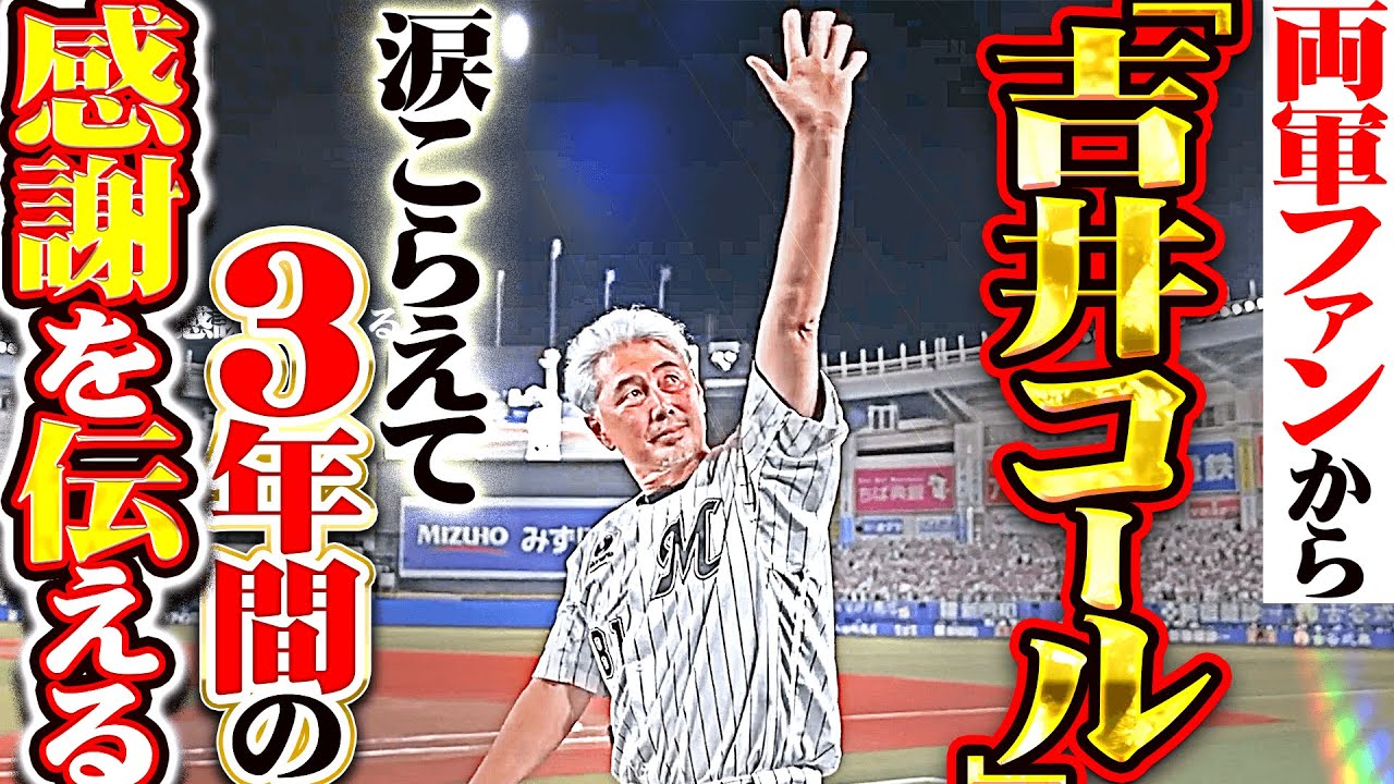 今季限りでの退任を発表している千葉ロッテ・吉井理人監督が最終戦セレモニー最後のあいさつ。涙をこらえながら感謝を伝えると、両軍ファンから盛大な吉井コールが巻き起こりました。おなじみの帽子シュッのポーズや、代走ポーズにリクエストポーズ…数々の”パテレ行き”を提供してくださった吉井監督の退任には寂しい気持ちもありますが、次の道でのご活躍を願っております。3年間の監督生活、おつかれさまでした!!