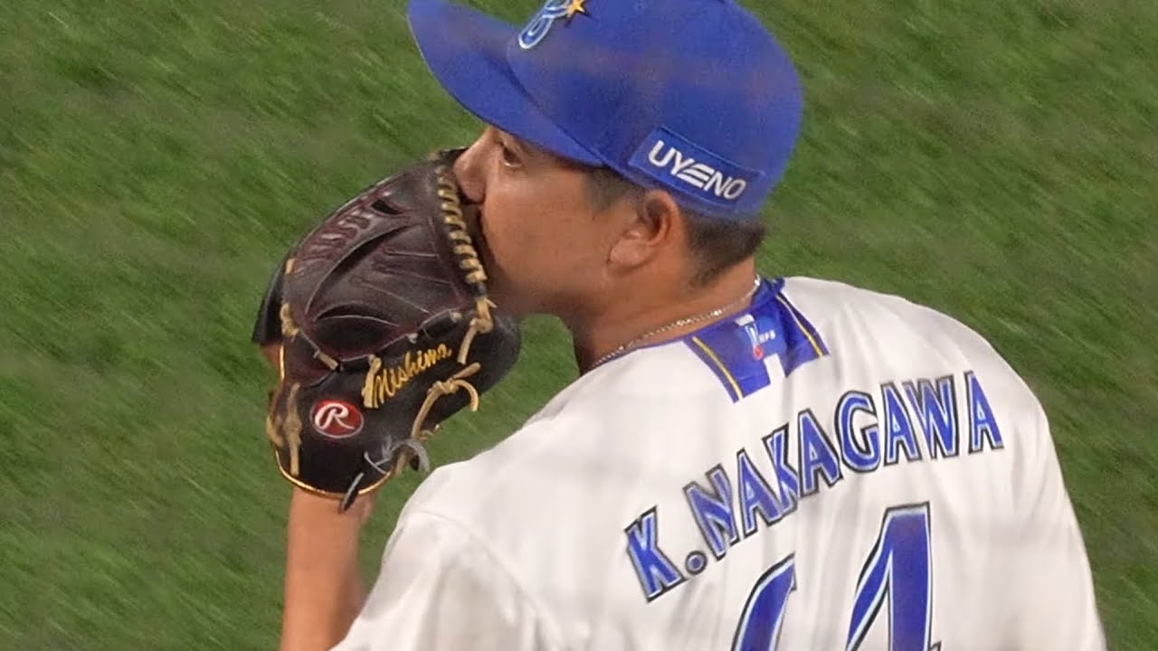 三嶋一輝の入場曲、グラブで登場する中川虎大(2025.10.1/横浜スタジアム)