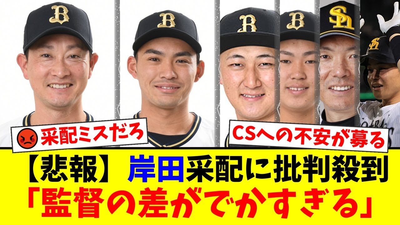 【悲報】オリックス、CS前に鷹に大敗でファン激怒…岸田監督の「代え時が悪すぎる」采配と若手バッテリー起用に賛否両論。紅林弘太郎の9号2ランが唯一の光明か【プロ野球ファンの反応】