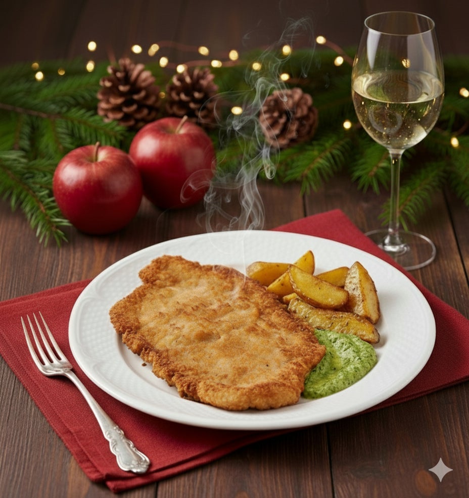 7種類のハーブを使った爽やかな特製ソースが、サクサクのシュニッツェル(カツレツ)と調和します。また、現地のクリスマスマーケットで親しまれている「アップルワイン」も提供予定。フルーティーな香りとすっきりとした後味が特徴のこのワインは、温めて飲むことで、冬の寒さで冷えた体を心地よく温めます。
