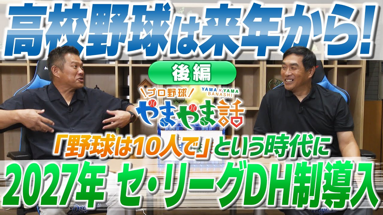 山本昌&山﨑武司 プロ野球 やまやま話「2027年 セ・リーグもDH制に!<後編>」 前回に続き、セ・リーグでも2027年から導入が決まった「DH制」が今回のテーマ。 セ・リーグにさきがけ、2026年から「DH制」を導入する高校野球においてのメリットを山本昌さんが熱弁! 一方、山﨑武司さんは「DH」として試合に出ることの難しさを力説! そんなやまやまコンビのお2人からは、 野球の「新時代」が到来するのでは?という大予測も! #DH制 #山本昌 #山﨑武司 #セリーグ baseballBaseball newsDHDH制DH制導入ベースボールやきゅう山本昌山﨑武司野球野球ボール高校野球 NPBHUB.COM | The Fanbase of Nippon Baseball & Nippon Professional Baseball