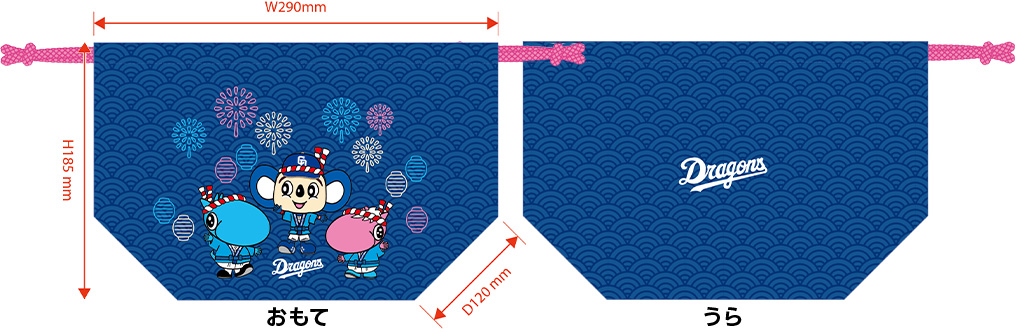 11月22日(土)に開催する「中日ドラゴンズ ファンフェスタ2025」では、ご来場の皆さま全員に「お祭り」をテーマにした、ドアラ・シャオロン・パオロンがデザインされた『オリジナル巾着』をプレゼントいたします!