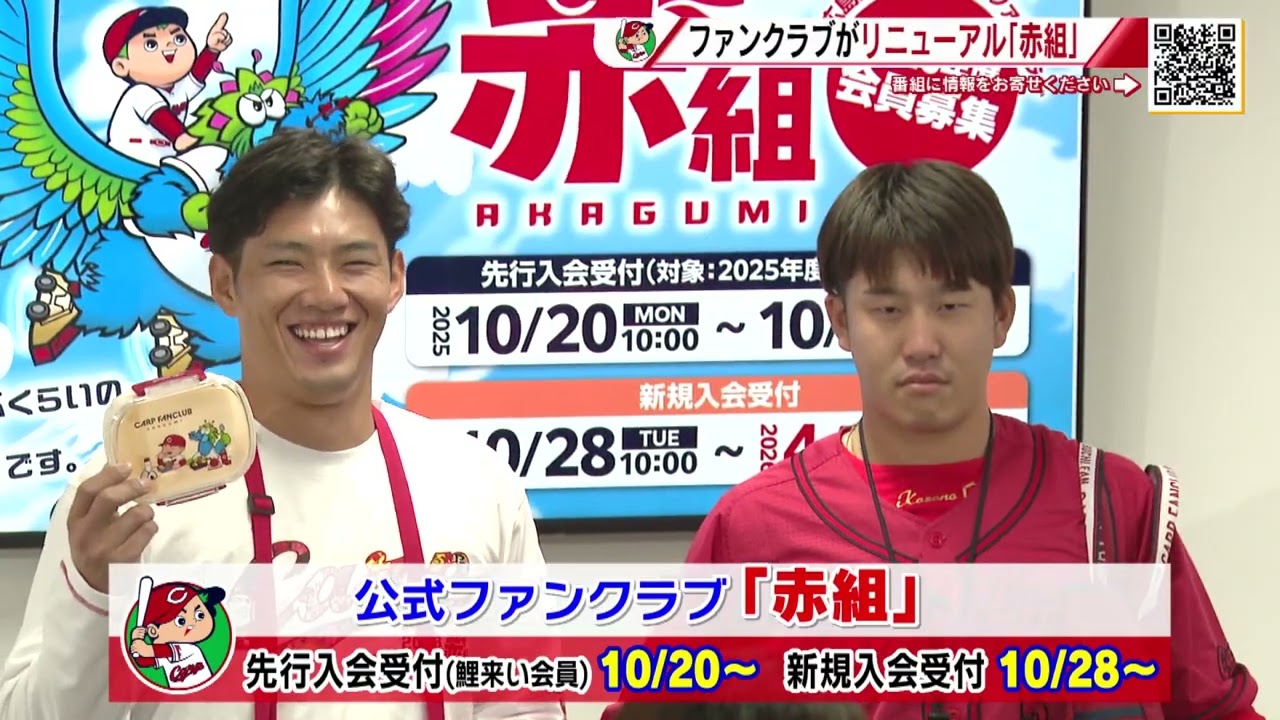 まずはカープお伝えします。 10日から中期練習がスタートと 3 連の秋を迎えますが、公式ファンクラブが来年からリニューマルすることになりました。 [音楽] 長年親しまでできたファンクラブが大幅にリニューアル。名称も赤組という名前に変わります。従来の変更点は大きく分けて [音楽] 2つ。 1つ目はチケットやグッズの購入に加え、 松田スタジアムへの来場や球場での飲食に より溜まるポイント制度。 溜まったポイントは限定イベントやグッズ に交換可能です。注目は実際に選手が着用 したユニフォームとの交換。ファンにとっ てはたまらないデアアイテムです。変更点 2つ目はコースが6つに拡大し自由に 選べる点。従来のようにチケットを先行 購入できるコースやU練習上での2軍線、 特別感染エリア券がついた若い応援コース など応援スタイルに合わせた自由なコース 選びが可能です。 またいずれのコースでも入会グッズが選べ ます。新たに誕生する赤組ですが、現在の ファンクラブコいコい会員は今月20日 から。新記入会は28日より受付開始です 。 ファンクラブでしかゲットできない得典ばかりなので、え、是非たくさん入会してください。新しくなる、え、ファンクラブに、え、入会してもらって、はい、一緒に、え、最高の思い出を作って欲しいなと思います。 [音楽] はい。大きく進化したカープファンクラブなんですけれども、 6つにコースが分れています。 先ほどVTR でも紹介した若い応援コースもそうなんですが、スライディーと直接ハグやハイタッチができるマスコットコースなど様々な推しに合わせたコースがあるんですね。 [音楽] ただコースによっては年齢制限があったり店員が先着順で決められてますのでご注意ください。はい。スライディファンはマスコースおすすめです。 ね。