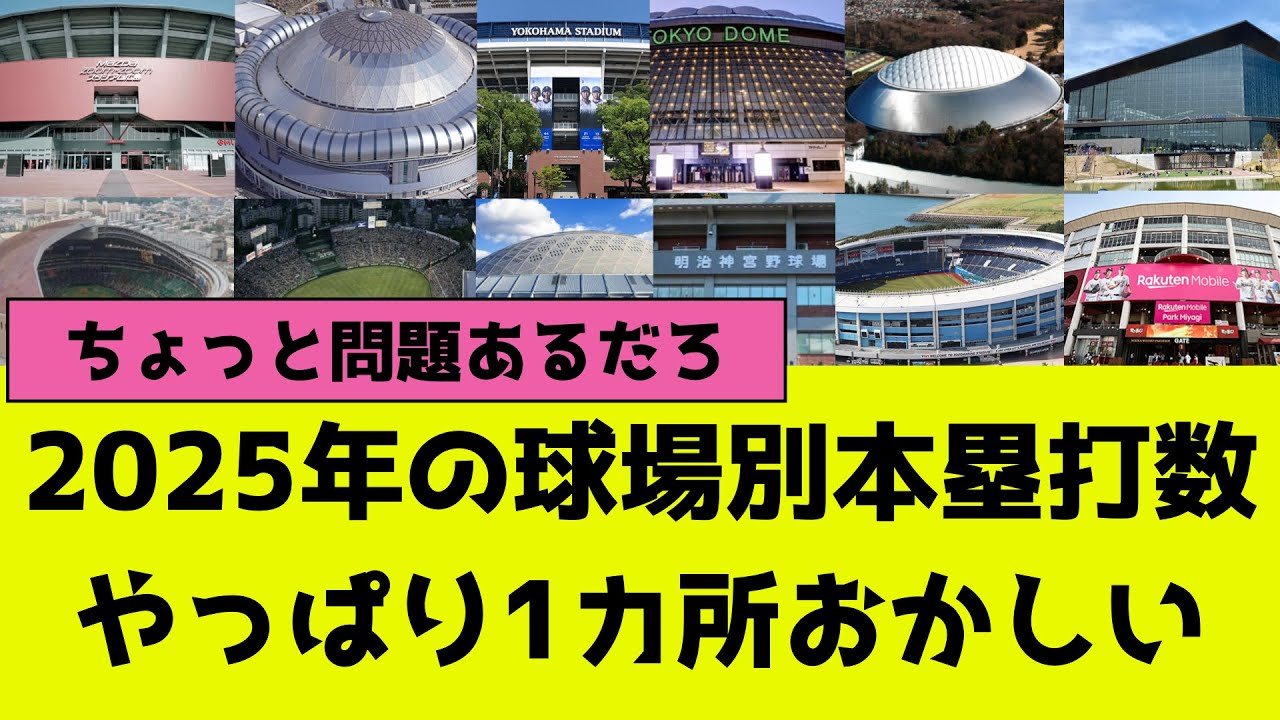 今年のプロ野球12球団ホーム球場別の本塁打数、やっぱり1ヶ所おかしいままだった