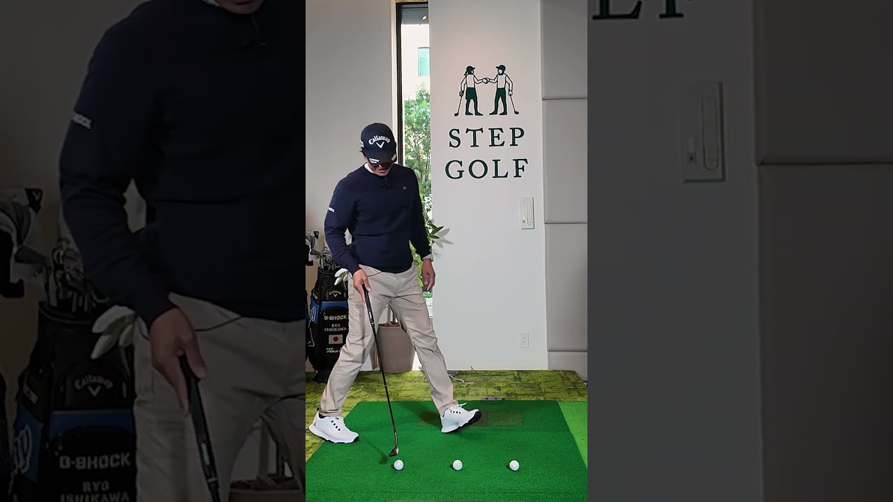 これはあのどこでもできるんですけどまず 自分が構えるボールとうんえっと初球編だ と本当にもう34cm50cmぐらい先に もう1個ボールをはい置いてもらってこの 2つのボールのはいちょうど真ん中にうん この3つのボールが綺麗に一直線に重なる ようにこのアドレスしてる状態からボール をこうクラブとかを使ってはははちょうど 真ん中にこうここら辺かなっていうので 置いてもらうっていうトレーニングなん ですけどうなるほどこれであの最初大げさ にちょっとこうやってずらすとうんあこれ は明らかに左にだなとかうんでこれは 明らかに右だなっていうとこからちょっと こうずらしてってどこら辺が真ん中 ちょうど1直線かなっていうここのボール ここのボールここのボールをうん全部行っ たり来たり目でしまくってで合って るっていううん確証を得たら後ろから確認 するっていうなるほどねあまあまあじゃ ないですかね じゃかあこれをこのまま打ってもよくて このボールを打ってこのボールのど真ん中 に当たればこのボールがこれにもた当たる んですよねうんうんうんうん でこれ を打った時にこれがちょっと左に行ってる すよねはいてことはこの最初のボールが ちょっと右に当たってるからこのボールが 左に行くんであちょっとプッシュしたなと かっていうのがま分かるので面白いこれは 家でよくやよくやり ますもう本当出玉の練習なんで