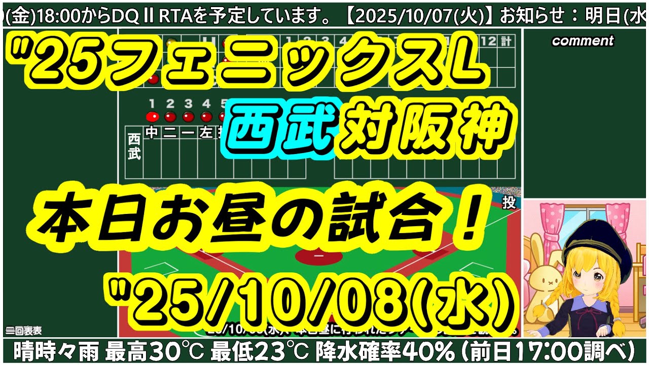 ※雨で試合中止の場合は配信もお休みです。この枠は使い回します。