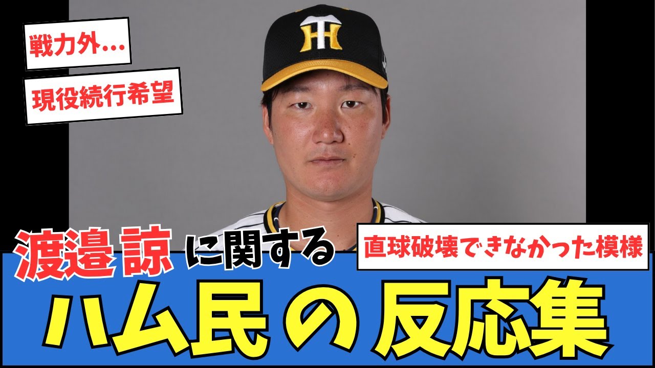 阪神渡辺に関するハム民の反応集現役続行へ強い意欲を示した阪神渡辺用は 現役は続けたいなんとか探しながらやっていければなと思います。 22 年オフに日本ハムからトレードで移籍し右の代打として 23年の日本一に貢献。 3年間在籍したことに 本当にいい球団でやらせてもらった と感謝した。 今期は22試合に出場するも打率は 1割5部8輪と低名。 2軍暮らしは続き。 テレビで見る機会が増えていたんで覚悟はしていました と中を明かした。 渡辺ダメだったか。ハムにいた頃はよく売ってるイメージあったけど。 渡辺りも23年の優勝メンバーの1 人だし斎藤は阪神だとプレッシャーに負けちゃうことが多かったからハムに行ったからこそ伸びたんだと思う。このトレードやっぱり良かったよね。 守備面だな。 ハムからトレードになった時は3 年やったが阪神の優勝メンバーになれてよかったと思う。 直球破壊王子だったはずなんだけど、阪神ではそんなこともなかったらしく、なんだか申し訳ないハムファンです。打として結果出してるイメージあったけど、トラファンがそうでもない雰囲気出してて成績見たらちょっと悲しくなった。 ハムに戻って枠わないか。 動き見てるとまだまだやれそうな気はする。中日かな? 現役続行か。 頑張れ。 日本一に貢献って貢献したか? [音楽] 現役続行とのこと。 [音楽]