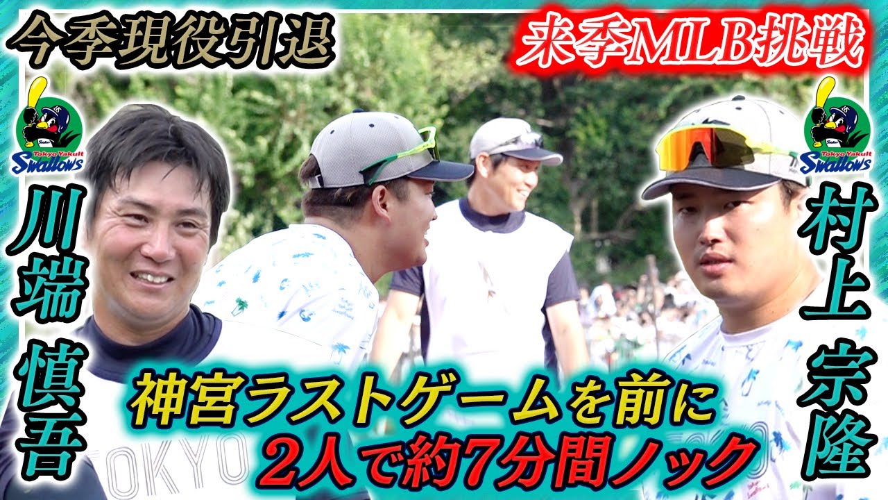 【2人で約7分間ノック】“神宮ラストゲーム”へ村上宗隆&川端慎吾|最後のキャッチボールで「まだまだやれる」と引退撤回懇願?|ヤクルト本拠地最終戦試合前練習