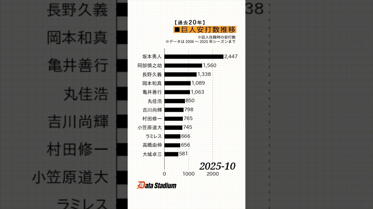 【過去20年!巨人の安打数推移】 #shorts #プロ野球 #データスタジアム #巨人 #読売ジャイアンツ
