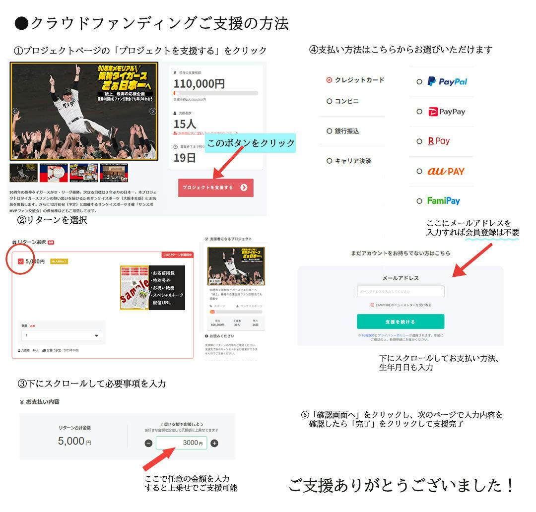本プロジェクトでは、そんなタイガースファンのみなさんの熱い思いをチームに届けるため、「サンケイスポーツ(大阪本社版)」にみなさんのお名前を掲載します。