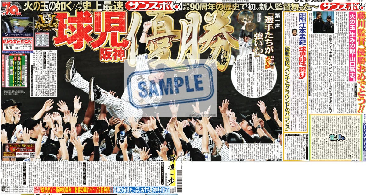 「サンケイスポーツ特別号外」は、セ・リーグ優勝時にサンケイスポーツ大阪本社が発行する特別号外でご自宅まで郵送します。