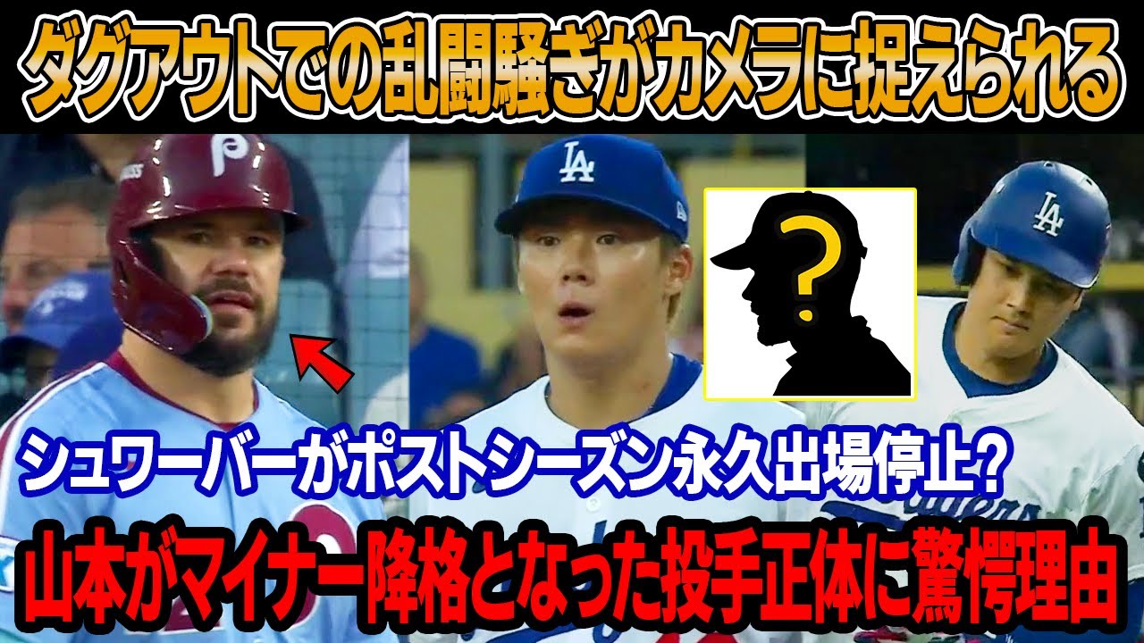 「大谷“打てぬ”」発言を嘲笑した後、3人の選手がシュワーバーを取り囲む!ダグアウトで乱闘を審判のボディカメラが捉える…シュワーバーはポストシーズンから永久追放!山本は降格処分を受けた投手の正体に驚愕