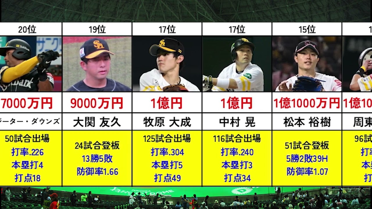 福岡ソフトバンクホークス年棒ベスト25を成績と共にまとめています