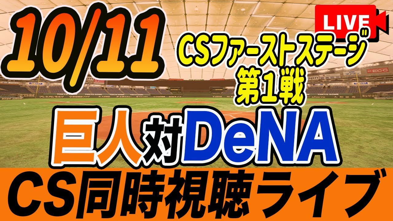 【巨人/同時視聴】10/11巨人対横浜DeNAベイスターズCSファーストステージ第1戦を観戦しながら雑談しようライブ配信 予告先発:G山﨑伊織 DBケイ 読売ジャイアンツ プロ野球観戦ライブ