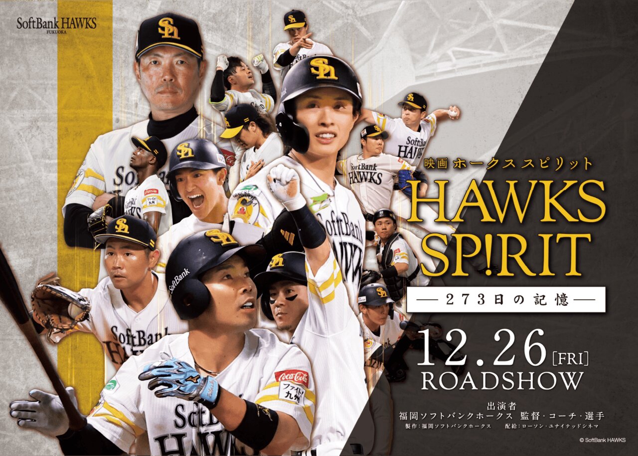 福岡ソフトバンクホークスの活躍を追ったドキュメンタリー映画「映画 HAWKS SP!RIT 273日の記憶」が、12月26日から全国35の映画館で公開されることが決定。あわせて、ティザー映像(https://www.youtube.com/watch?v=dWYXveIrRSA)や場面写真などが披露された。