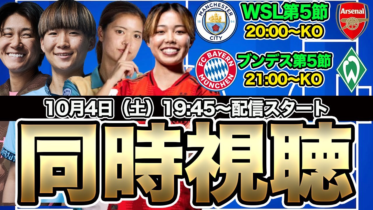 【同時視聴】長谷川唯、藤野あおば、山下杏也加 谷川萌々子!マンチェスター・シティWFC対アーセナル・ウィメン WSL第5節&ブンデス女子第5節 なでしこジャパン