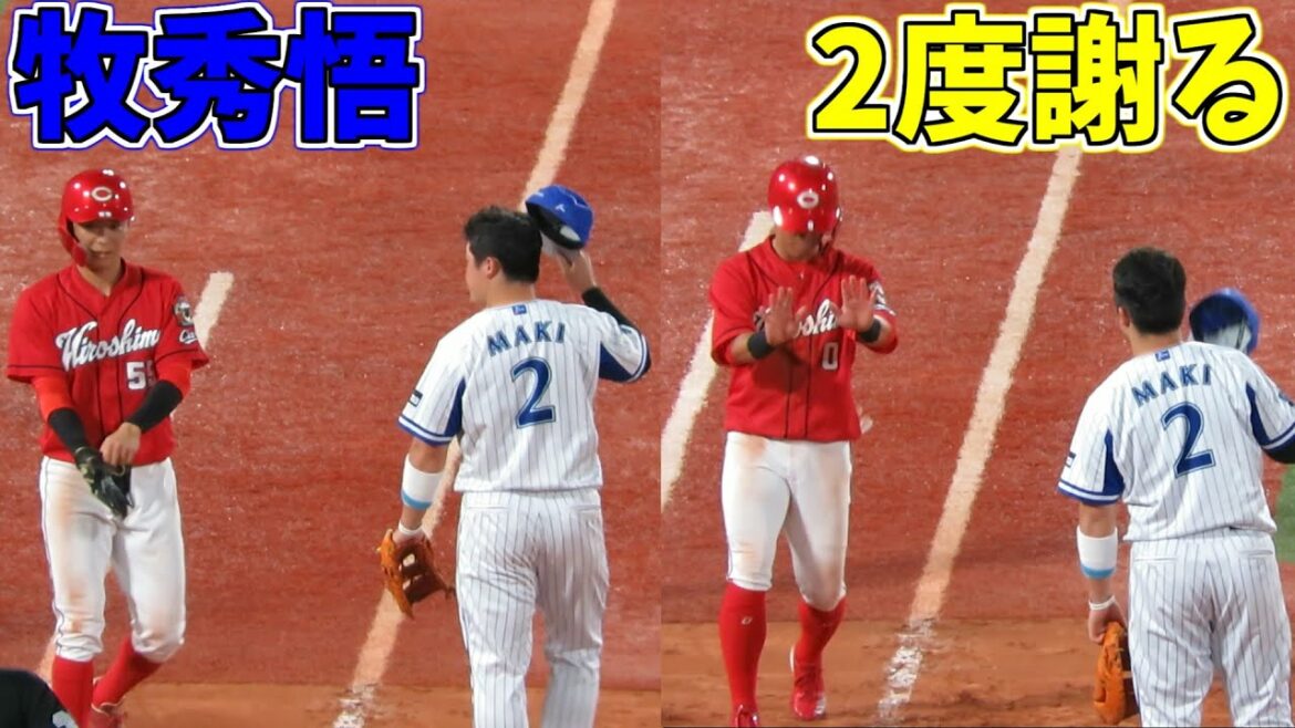 この日久々となるファーストでスタメン出場した牧秀悟選手。 9回に登板したシャッケルフォード投手がこの回2つのデッドボールを投じてしまいましたが、ファーストを守る牧選手が相手選手に謝っていました。 相手を気遣わせないカープ上本崇司選手の対応も素晴らしいですね。 #横浜DeNAベイスターズ #牧秀悟 #広島東洋カープ #上本崇司 YOKOHAMA DeNA BAYSTARSシャッケルフォード 野球上本崇司広島東洋カープ横浜DeNAベイスターズ牧秀悟 NPBHUB.COM | The Fanbase of Nippon Baseball & Nippon Professional Baseball