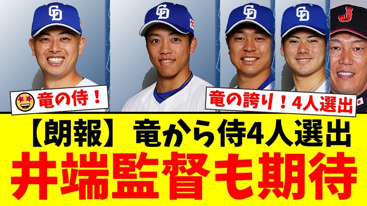 【侍ジャパン】中日から高橋宏斗、金丸、松山、岡林の4名が選出!井端監督が新人金丸夢斗に「可能性ある」と期待を寄せる中、ファンからは歓喜の声が殺到!【プロ野球ファンの反応】