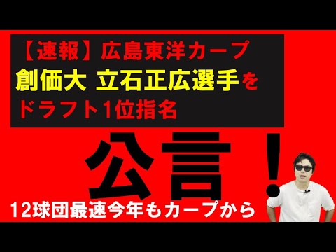 【速報】広島東洋カープ創価大立石正広選手をドラフト1位指名公言!
