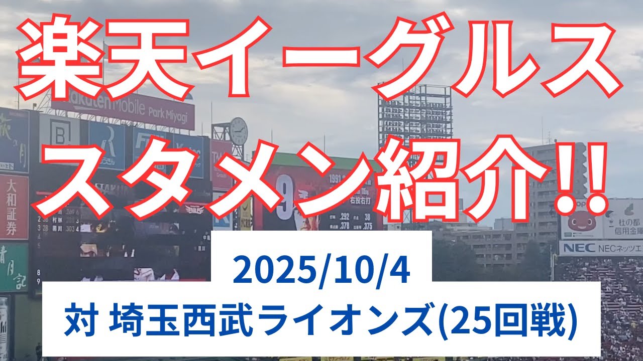 楽天イーグルス 2025/10/4 対埼玉西武ライオンズのスタメン紹介映像となります!!
