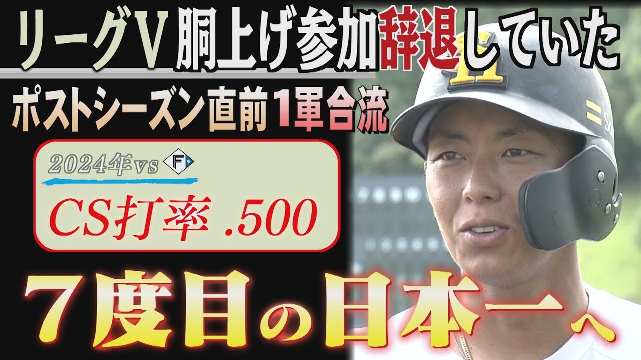 ファイナルステージが始まるわけですけれども、短期決戦を知り尽くすこの頼れるベテランが帰ってきますよ。 [音楽] チームとしての目標である日本一っていうところではい、一緒に立っておきたいなと思います。 [音楽] 6°のリーグ優勝と日本1 入団3年目の2012年にショートの レギュラーに定着して以降長に渡り上昇 軍団を検引し数の影感を手にしてきた ベテラン今宮健太 期の上げが始まった。 しかし今シーズン5 年ぶりのリーグ連覇を達成したホークスの換期の輪和の中に今宮の姿はありませんでした。ここに振り返るとしてこどうですか?ま、振り返ってみれば全てはキャンプだなと思いますねえ。ま、あそこの怪我っていうところからなんか今年 [音楽] [音楽] 1年うーん。 キャンプでのふハぎ2、4度の離脱を強い られ、多くの日々をリハビリに費やす1年 となった今宮。 ポストシーズンでの復帰を最優先し、優勝 の瞬間に立ち合うことよりも調整に専念 する道を自らの意思で選んだと言います。 チームとしてまずやっぱリーグ優勝というところは目標ではあったとは思いますけど、ま、最大の目標っていうのはね、昨年できなかった日本一だと思ってるんで今宮が見据えるのはリーグ優勝のさらに先にある日本一の奪還。シーズン終了後も若手体で戦うフェニックスリーグに参加し、順調な回復ぶりをアピール。およそ [音楽] [音楽] 2 ヶ月ぶりに一軍に合流することが決まりました。 ヒットは出てますし、守る方でも、ま、しっかり打球が飛んできてるし、今のところは申しぶんないぐらいいい感じできてると思います。やっぱい若い選手が本当に今年の優勝っていうところを導いてくれたのも間違いないので、ま、そういったものを含めると自分に焦りがないっていうのはい。正直そんなわけないのでやっぱ勝負の世界なんで、ま、だからと言ってはい。 [拍手] [音楽] [音楽] まあね、負けるっていうのもちょっと 嫌ですから。はい。そこはしっかり勝負し に行って、え、ま、現ポションは野村 イサミであったり、ま、川瀬であったりと か、あ、いろんな若い選手がショートを 守ったいろんなとこやったりしますけど、 ま、そういった子たちに負けないように はい。1年でも長くとは思います。 去年のクライマックスシリーズでは今年も 対戦する日本波相手に5割の打率を残した 今宮。短期決戦を熟地するプロ 16 年目のベテランがチームにさらなる勢いをもたらしてくれそうです。去年もね、打率 [音楽] 5割ですからまくれ。 みや