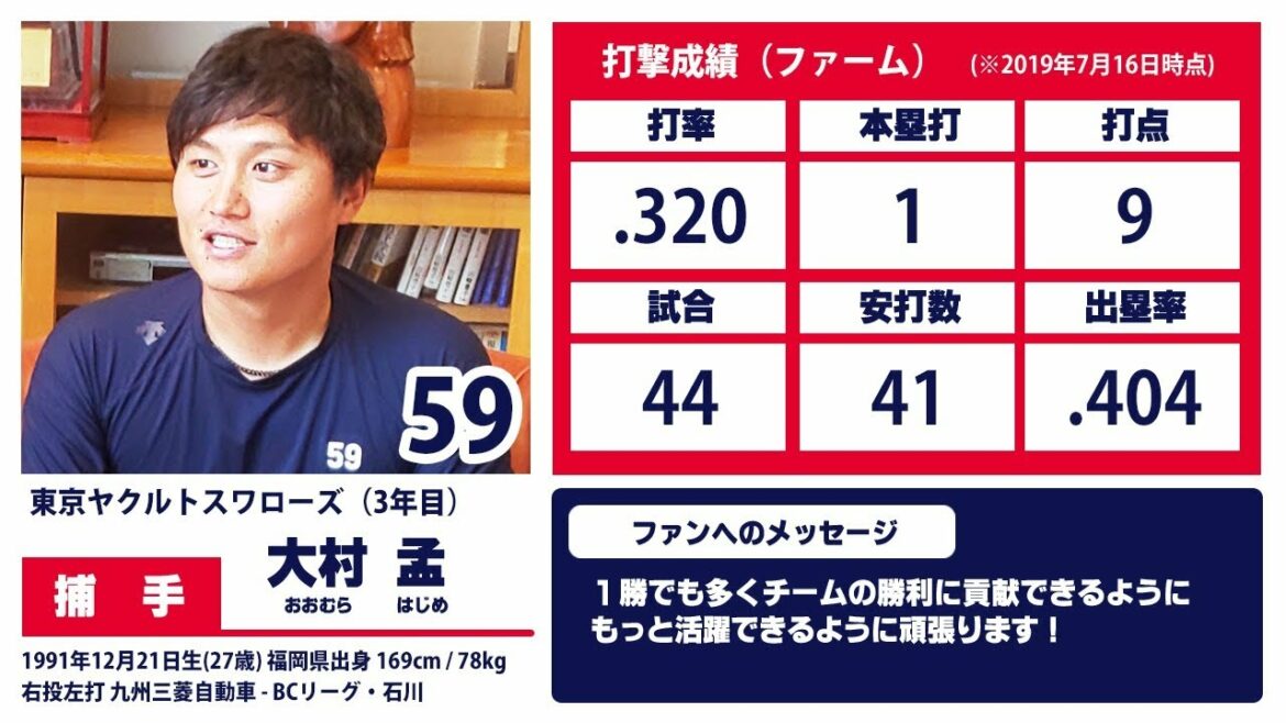 ルートインBCリーグ「石川ミリオンスターズ」から、2016年のドラフト会議で、東京ヤクルトスワローズに育成1巡目指名で入団した大村孟選手。昨年3月に支配下登録され、今年7月にはプロ初ホームランを放ち、さらなる飛躍が期待される27歳に、元ファイターズ 嶋田信敏氏が直撃インタビュー。