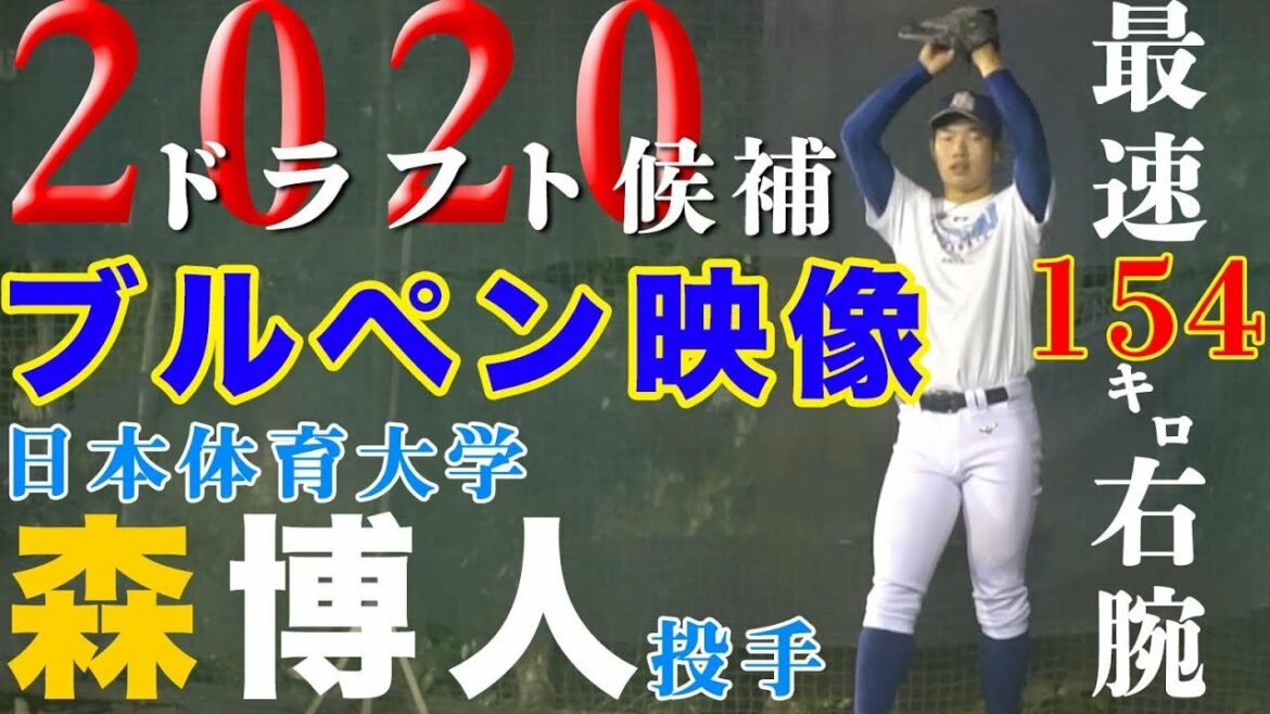 2020年のドラフト候補、日本体育大学3年生・森博人投手。最速154キロの直球に、大きな曲がりのカーブが魅力的な右腕。1年後のドラフト会議が楽しみな森投手のブルペン映像をご覧ください!