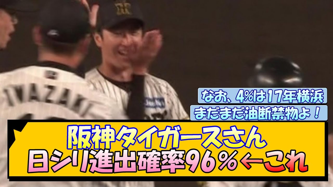 阪神タイガースさん 日シリ進出確率96%←これ