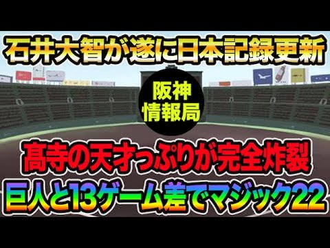 【石井大智が遂に日本記録更新】髙寺の天才っぷりが炸裂など巨人と13ゲーム差でマジック22が神過ぎる【阪神タイガース】