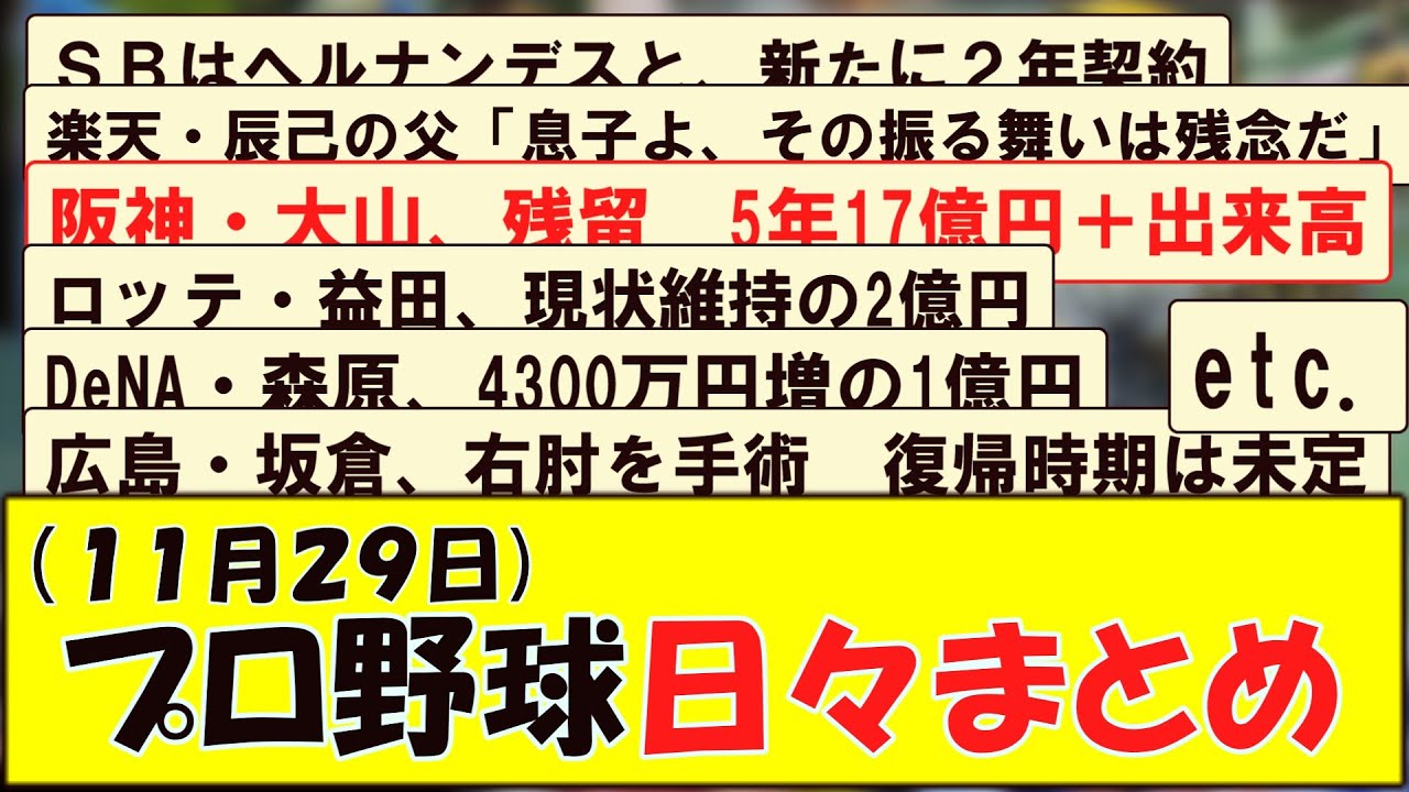 (11月29日) プロ野球 日々まとめ
