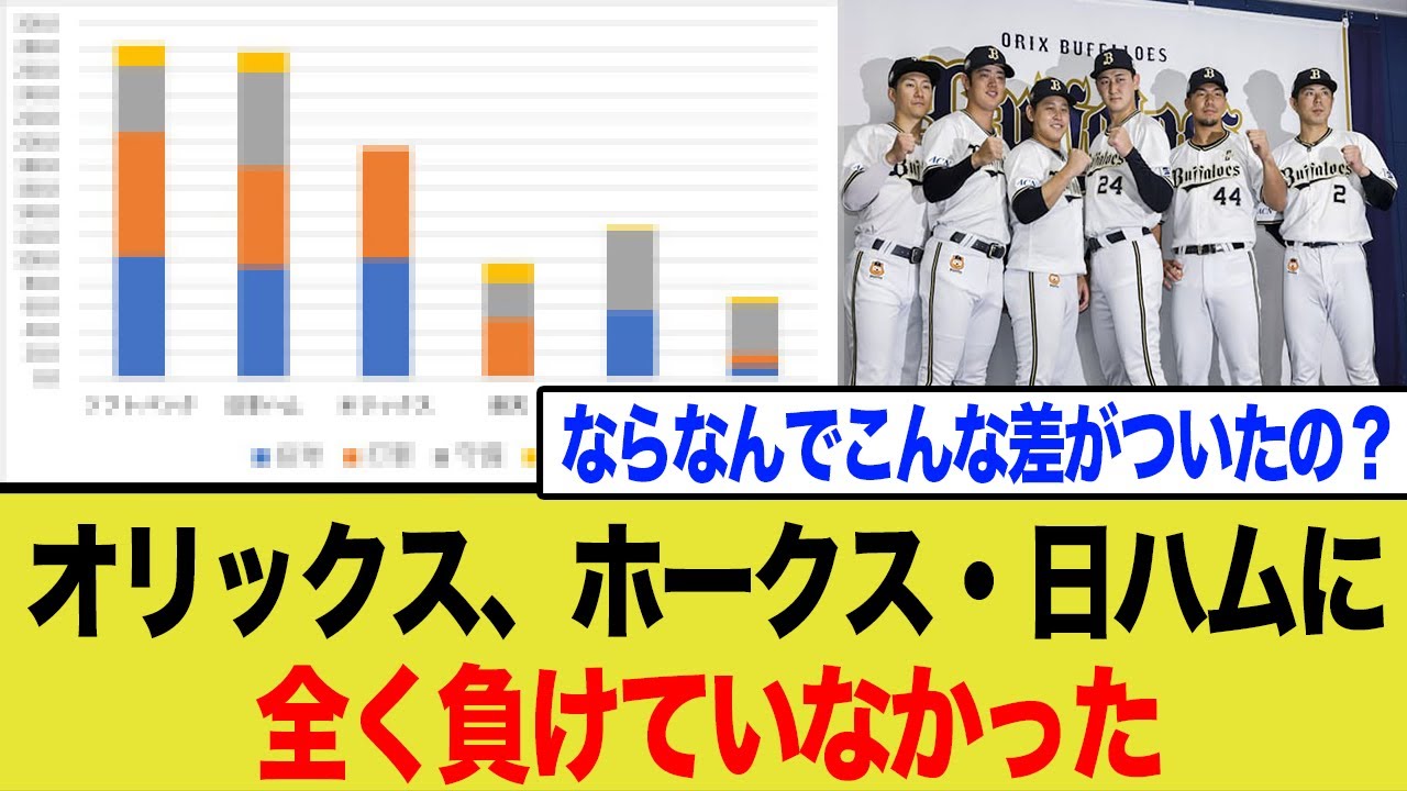 オリックス戦力図で見るとホークス日ハムに全くていなかった。 こちらは2025 年のパリーグ核球団の戦力をグラフ化したものなのですが、一見して奇妙な形をしているチームがあることにお気づきでしょうか?そう、オリックス、バファローズです。このブラフは当手、打撃、守備、総塁の 4 項目についてリーグで最も数値が低いチームを基準のゼロとして各チームがどれだけプラスを積み上げているかをしたものです。 これを見るとオリックスの投資力と打撃力 はリーブを争ったソフトバンクや日本ハム と比べても全く遜色内むしろトップクラス であることが分かります。しかしその一方 で主義と総塁の項目が完全に結落しており 、まるで磁石のように東打に能力が偏った 極端なチームバランスになっていることが 貸視化されています。特に守備面では近年 のクライマックスシリーズなどでも課題が 指摘されており、太田選手やクレ林選手の 二間など具体的なポジションでの不安の声 も少なくありません。興味深いのは失作数 自体はリーグで最も少ないという点です。 これは一見すると守備が硬いように思え ますが、実際には守備範囲が狭いために そもそも打球に追いつけずエラーが記録さ れないケースが多いことを示唆しています 。 今回はこの立な戦力バランスがなぜ生まれたのか、そしてこのチームが抱える課題についてネットの反応と共に深掘りしていきます。これに対するネットの反応。主理総塁 0ロってすごいな。な んでオリックスだけ2色なんだよ。 オリックスで言うZRのレギュラー若つの 3.0は咲たかね。 この間のCS 見てても守備やばすぎやろとは思った。永遠と暮れ林の横を打球抜けてってた。 太田クれ林の勇間とか正気じゃないからな。まともなチームなら 2人とも夕刊首やろう。 全ポジション守備終わってるからな。二勇間なんて Aカラインの1 年目みたいな守備のレベルやし。 広い球場なんだから守備をガチった方が合理的やのにな。 3 年目の前は守備と投球だけの打撃カスカスのチームで使用試合ばっかでクソもんなかったわ。だから今の打撃全振りもしゃあない部分もある。 当時が無の楽天打撃が無セブ東打田どもに薄川のろって。 この守備人バックに無双してた山本義ってやっぱ発すげえは三振取れば関係ないしな。 楽天セーブロッテのB クラスオールスターでソフトバンクに立てるか。 Bが3 つ集まったところでホックスには対抗できんやろ。 タマ守備とかエラー連発とかではなくみんな真面目に守ってるけど範囲が狭すぎという感じなのが切ない。 オリックスは基本的に全員事蔵だから当初の負担半端ないと思う。これでバックに頼る心を持たない大が生まれるんや。オリックスの極端なチーム構成。特に深刻な守備力の欠場を指摘する声が圧倒的に多く見られました。 [音楽] 一方でこうしたチーム事情が逆に山本吉信 投手のような絶対的エースを育てたのでは ないかというマニアックな視点からの考察 もありました。過去のチームスタイルとの 比較など様々な角度から議論が買わされて いるようです。いかがだったでしょうか? 皆さんの熱い野球断義も是非コメントで 聞かせてください。見逃し三振はもったい ないので高評価とチャンネル登録も よろしくお願いします。