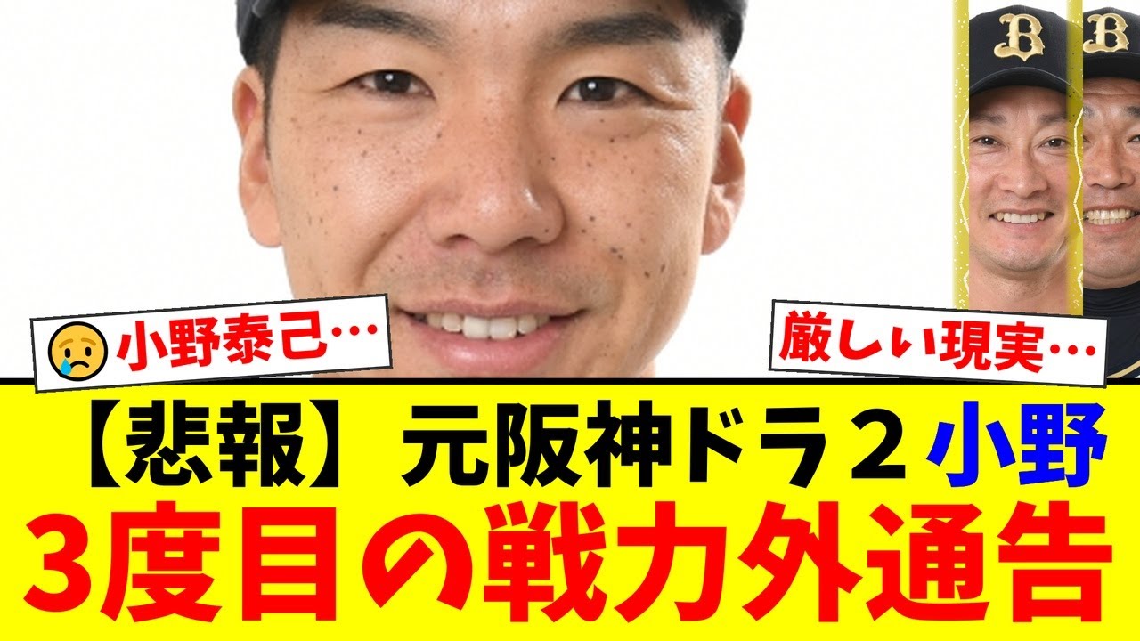 2016年ドラフト2位で阪神タイガースに入団した小野泰己投手が、オリックス・バファローズから3度目の戦力外通告を受けました。