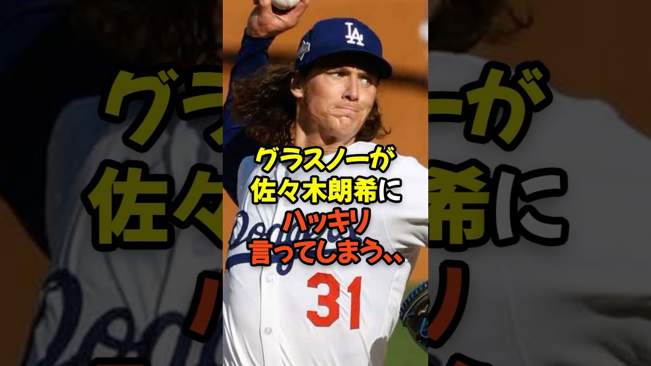 グラスノーが佐々木老キにはっきり言って しまう。先日行われたフィリーズとの シリーズ第4戦で先発していたドジャース のタイラーグラスノ。そんなグラスのは6 回にアんだ無失点という素晴らしい ピッチングを見せてリリー人へとついでい たが試合後のインタビューでは初回は あまり良くなかったがそれ以降はリズムに 乗ることができた34回から足を釣ってい た少し遅い動作の時に強く釣る感じがあっ たが頭から追い出して集中していたと まさかの状態を明らかにした上で都市の ウイルもいいリードをしてくれたしいい 守備も何個もあったというように振り返っ ていた。また8回からの3イニングを悪館 のピッチングで抑えてチームの勝利を呼ん でいた佐々木老樹についてグラスノーは 今シーズンの初めに彼が経験したこと、 そして私が今まで見た中で最もひどい イニングを投げたことを考えるとこれは 信じられないことだ。残りのポスト シーズンは彼が必要になるだろうと復活を 遂げた佐々に惜しみない3を送ってい