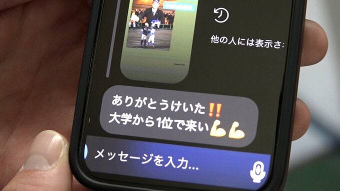 指名漏れ直後、味谷に「おめでとう」と携帯からメッセージを送ると「大学から1位で来い」と返信が届いた。「その言葉のおかげでここまでこれた」と話す堀越。今でも辛いと感じたときには見返しているという。