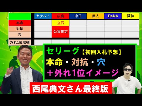 はい。え、今回はですね、え、セリーグの 西尾のリフさん最終予想というところで、 ま、本命対抗穴プラスは外れ1位という ところで、ま、今までこの企画分けてやっ てたんですけど、ま、最後に西尾さんに ドラフト前に話聞ける機会ですので、ま、 もうくっつけてやろうというところでです ね。で、穴とかハズれ 1 位って、ま、ぶっちゃけね、どこがどう来るかわかんないから、ま、ハズれ 1 位のところはちょっと重複してるようなとこ。 そうです。 本命太鼓穴は一応、えっと、最初の入札予想っていうとこなんですけど、ま、そこら辺はちょっとあのファジーに見ていただければなというところですのでよろしくお願いいたします。 え、それではですね、今回も、え、ヤクルトから、え、聞いていければと思うので、じゃ、最初に本命、対抗穴、そしては外れ 1 位、え、読み上げていただけますでしょうか? はい。え、ヤクルト本命中西投手。 おお。 最高縦石選手。 はい。 穴竹丸投手。 おお。 はズれ1位は谷選手で。 おお。お、なるほど。 うん。 最後も当手でくるちょっと意地を貫きましたね。 縦石報道も出てましたけど。 はい。それは認識の上でってことですね。 うーん。嫌な気がするんですよね。 うん。ちょっともうそこを予想するのが楽しくなってるとかないですか?大丈夫ですか? いや、別そんなことないです。 あ、そんなことない。 うん。うん。 世間の反発を楽しんでる説は いやいや、全然別ない。 そう、もう投手でやっぱ足りてないんじゃないかってことです。 まあ、まあ、でもどっちかだと思うんですけどね。 [音楽] やや中に、ま、ゴブゴブかなと思ってます。どっちかなと思ってますけど。 ああ、まあ、ま、それぐらいの感じだけど。 うん。 投資にしたんすね。うん。 そうなんですよ。やっぱりね、なんとなくピッチャーできそうな気がするんですよね。 [音楽] そうっすね。 で、去年もあのヤクルトファンの方いやもう野手だから何言ってんだにしようって書いてたと思うんですけど正解は当だった。ヤクルト球団が選んだの当手だったという事実は もう村上選手以降ずっと続いていると いうところになります。 そうなんですね。ま、ウェバーも早いですし、 ま、どっちで言ってもいいと思うんですけど。 ああ。 うん。ま、2 位のイメージとかはそうなると、ま、 だから中西手で行って 2 位谷選手みたいな理想かなと思って、ま、外れだったら繰り上げるかなみたいな。 そう。ああ、そういうこと。あ、そういうところで野種だったんですね。この外れた後の はい。ま、あと穴はまあね、左の先発も欲しいって思った時にじゃあ誰が 1番 ね、あれか、ま、モ投も考えたんですけど うん。 うん。 うん。まあ、そうすね。なんかよりこうまるそうですね。ま、竹丸投手の方がちょっと うん。 うん。ちょっと強いかなって思ったんで うん。 ボールとかがはい。 ということですね。じゃ、やっぱ中西都市丸投手の投手の点で、ま、ちょっと左側速戦略とかっていうところで穴で竹丸投手もあるというとこで、外れ [音楽] 1 位に関しては、ま、さっき言っていただいた意図の通り谷選手というとこです。 ま、これは誰が残ってるかみたいな話 もちろんあると思うんですけど、ま、 こんなイメージとこで捉えてもらえればな と思ってます。はい。で、広島東洋カープ に関しては、え、高言が出ましたので、え 、ま、本命も何も最初の入札は縦選手で 決定しているというところになります。 ま、ちょっと生放送とかでもお話ししましたが、西尾さんカープの縦選手来た時にはどんな感想でしたでしょうか? いや、なくはないかなと思ってましたけど、でも僕ちゃだと思ってたんで正直おとは思いましたね。 うん。ああ、そういうところですね。 意外っちゃ意外でしたね。まあ、でもやっぱうん。佐々木谷大選手も縦石選手もまあ被らないできるだろうって判断したんじゃないですかね。ま、取れた後の話ですけど。 うん。うん。うん。 うん。 そういうことですね。なんで今カープは本当外した後の多分シミュレーションみたいなところで今色々考えられてるのかなと思うんですけど、 9 時外したところここはまあイメージはいかがですか?西さん的には。 そうですね。外したらもうピッチャーのような気がしますよね。 うん。 なんで外れはアジアの斎藤投手かなって思っ ああ、そういですね。 多分サイト投手の評価高そうな気がするんですよね。あの、 うん。ちょっとスカート会議とかでも上がってましたし。 アジアとのあるチームですもんね、非常に。 うん。やっぱ心でこうね、こうさっき々、ま、大セラ投手とかもね、クリ投手もいなくなって、大セラ投手もちょっとベテランになってきてか、森投手もね、ちょっとどうなるかわかんないってなると [音楽] うん。 ま、こういう先発っぽいうん、ピッチャー欲しいんじゃないかなって気がします。ま、やっぱアジアの選手はね、なんだか