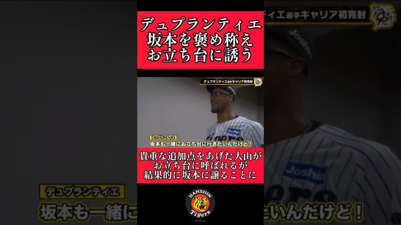 【阪神】”デュプランティエ”一緒に完封を成し遂げた坂本をお立ち台に誘う! #阪神 #阪神タイガース #デュプランティエ #坂本誠志郎 #shorts