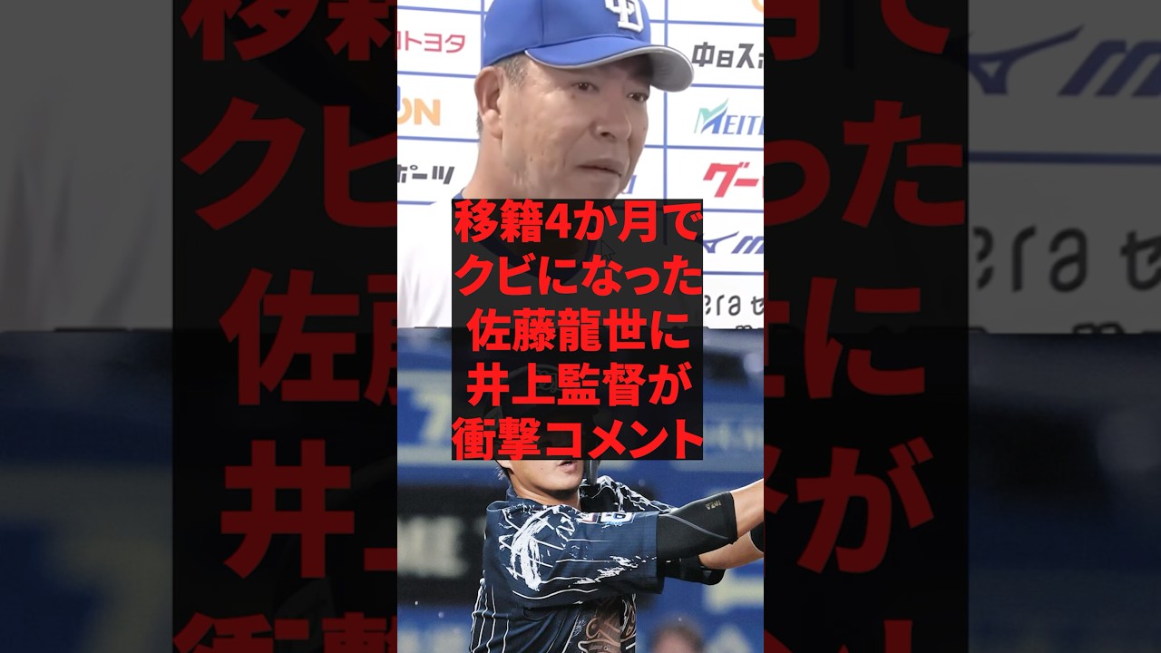 シンプルに実力がなかったね。遺跡4ヶ月 で首になった佐藤竜星に井上監督が衝撃 コメント。西武1年目の時はリーグ連覇を 果たしたチームの一員として新人ながら1 軍の試合に出場していた佐藤だが、2年目 になんと高速道路で89kmオーバーの 149kmで走行するという大学生みたい な行為をしてしまい、無期限の大外試合 禁止を言い渡されてしまった佐藤。1度は 日ハムに行くもまた西武に戻ってきたが 今年のオープン戦の時に佐藤は酒に寄って 女性とホテルに泊まりそのまま寝坊すると いう失体を犯してしまいこれを受けに渋 監督から2軍どころか3軍落ちを命じられ てしまったのだ。そのマナマ西武では実質 戦力という扱いになってしまったことで6 月に中日に設置することになったが23 試合で打率197に終わってしまいわずか 4ヶ月で戦力街を言い渡されてしまった。 井上監督は佐藤に寄り添う場面もあった ものも、最終的には電話が来てしまったと のことで移籍して34ヶ月思った成績が 残せなかったので悔しいなという思い口に していNo.