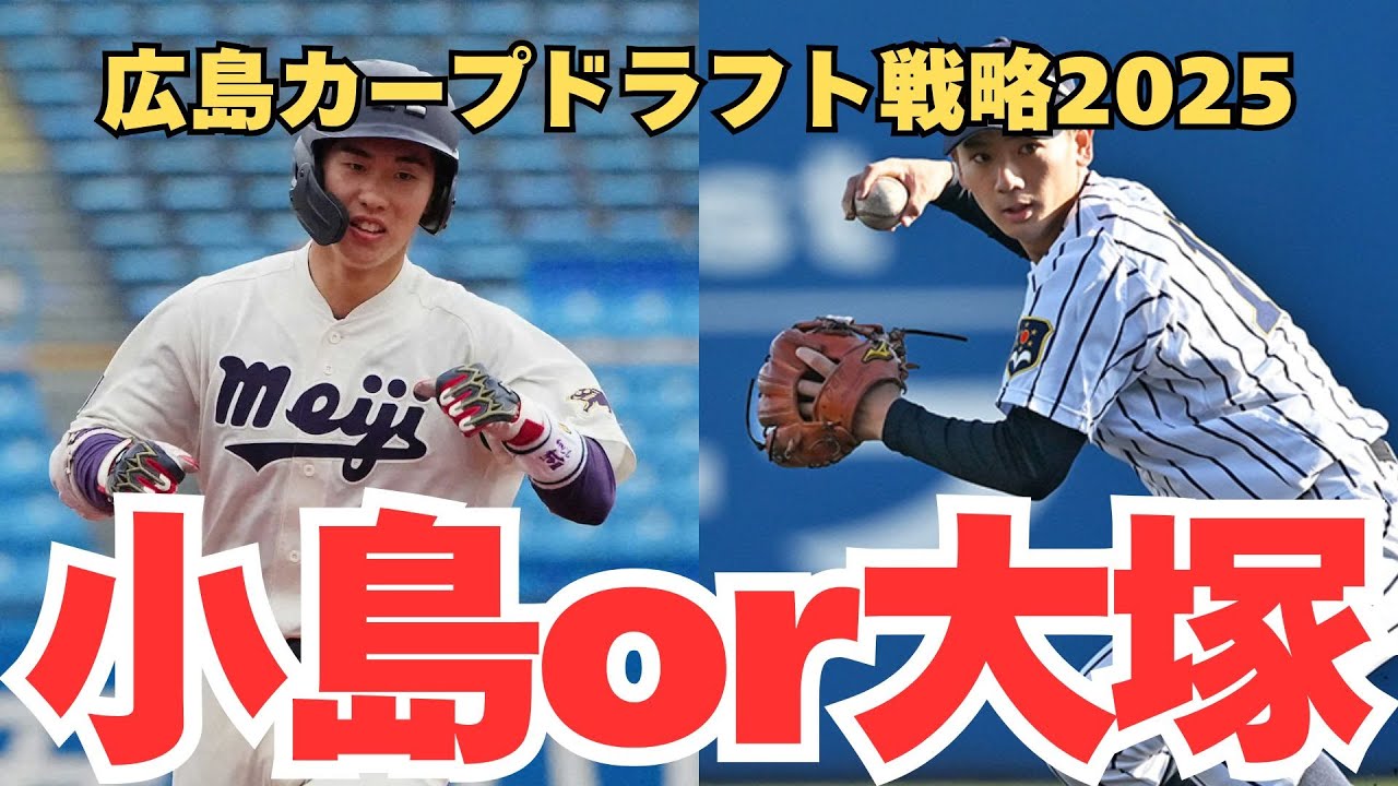 こんにちは。プロや球員インサイトです。 広島東洋カープが抱える最大の弱点をご 存知ですか?それはセンターラインの深刻 な人材不足です。坂倉選手の守備不安、 小ぞ選手の守備課題、そして迫る世代交代 。2025年シーズンでこの課題は一層 明確になりました。巨人スカウトが不調の 時が見つからないと絶賛する明治代小島 大ガ岩田博和監督が世代ナンバーワンと 太鼓を押す東海代カル案カープが狙うべき はどちらなのか。そして社会人から即戦力 を複数獲得する秘作とは今回はカープの 2025年ドラフト戦略を完全解明します 。高評価とチャンネル登録もよろしくお 願いします。センターラインの深刻な 人材不足カープの2025年シーズンを 検証するとセンターラインの選手層に重大 な課題が浮上しました。主人から確認し ましょう。1軍では坂倉選手が中心で清水 選手と石原選手も出場機会を得ています。 ベテランの相澤選手や磯村選手も在籍して いますが年齢的に世代交代の時期が迫って います。坂倉選手は打撃面での期待は 大きいものの、守備面での評価が定まって いません。2軍の持ち丸選手や高木選手も 1軍で計算できるレベルにはまだ到達して いない状況です。つまり次世代の正候候補 が明確に見えていないのが現在の最大の 問題点です。ショートに移ります。現在は 小園の選手が主にプレイしていますが、 守備面での課題が指摘されています。選手 は守備力は高く評価されているものの打撃 面での物足りなさが否めません。他に ショートができる選手は二股選手がいる 程度で選手層のうさは深刻です。セカンド には菊選手という絶対的ベテランがいます が光継者問題も控えています。初木選手や ニ沢選手など候補はいるもののショートの 人材不足が最も深刻な課題と言えます。 センターラインは守備の金めであり、 チームの骨格をなすなポジションです。 カープがこの課題をどう解決するかが 2025年ドラフトの最大の焦点となり ます。明治代島大ガの天才的打撃カープの 1位指名候補として真っ先に上げられるの が明治大学の小島大ガ選手です。小島選手 は東海大相模時代選抜優勝を経験した保守 で決勝戦では9回1士満塁のチャンスで さよならヒットを放ち優勝の立役者となり ました。2年秋まで2類でしたが補給の うまさに着目した監督の判断で保守に コンバートされわずか半年で全国優勝保守 にまで成長した経歴があります。大学でも 2年春から正保守の座を掴み、その年に ベスト9を受賞、着実にキャリアを 積み上げてきました。最大の魅力はその 打撃力です。大学通算打率は3割3部3輪 、4年生の秋には打率5割3部8輪という 脅異的な数字を残しています。6期で計 59試合に出場し、通算68ア6本塁打 45打点という数字は大学屈の打てる保守 として評価されるに十分な実績です。 左打車として左右に弾き返す打撃技術勝負 強さを兼備え巨人のスカウトからは不調の 時が見つからない。試合全くダメなまま 終わったケースを見た覚えがないと表さ れるほどの安定感を誇ります。全日本大学 野球選手権では打率5割2年連続で出場し たハーレム国際大会ではMVPを獲得する など大部隊での実績も申し分ありません。 守備面でも2塁早急タイムは1秒8台から 1秒9台を計測しが光ります。大学から 本格的に保守を始めたにも関わらず スローイングは安定しており当を引っ張る 姿勢も高く評価されています。スカウト陣 からはコンタクト能力が高く感覚が良い時 の打撃は天才的保守としても大きな穴は ない。1スイングで仕留めるのはさすがと いう評価を受けています。一部では保守が 基本だが打撃を生かしてセカンドやサード を守らせる案もあるという声もあり打撃力 の高さゆも柔軟な気用法も期待されてい ます。カープにとって坂倉選手の守備面で の不安相澤選手や磯村選手の年齢的な問題 を考えると小島選手は理想的な補強候補と 言えます。プロ1年目から打撃で貢献し ながら保守としても成長できる ポテンシャルを秘めています。競合の可能 性は高いですが、カープが1位指名する なら小島選手が最有力候補でしょう。 ハズれ1位東海大塚案の守備力1位使命で 小島選手を獲得できなかった場合は外れ1 位の候補として浮上するのが東海大学の 大塚選手です。大塚選手は東海相模時代 から長候高級の守備で注目を集めた選手 です。身長17cmと小柄ながら フットワークの良さ、グラブさきの技術3 深めからでも安定した早急でアウトにする 守備力が最大の武器です。大学では2年生 の秋からレギュラーを獲得し、3年春には 打率3話2キ部で主打車争いに加わり ベスト9を受賞しました。スカウト人から は侍ジャパン大学代表の岩田博和ず監督が 世代ナンバーワン動き、スピード、性格性 において高いレベルにあると対鼓を押す など守備力への評価は極めて高いものが あります。巨人のスカウトは1個目の速さ 、正確さ、身のこなしもいいと評価し、 中日のスカウトは大学生のショートでは トップクラス