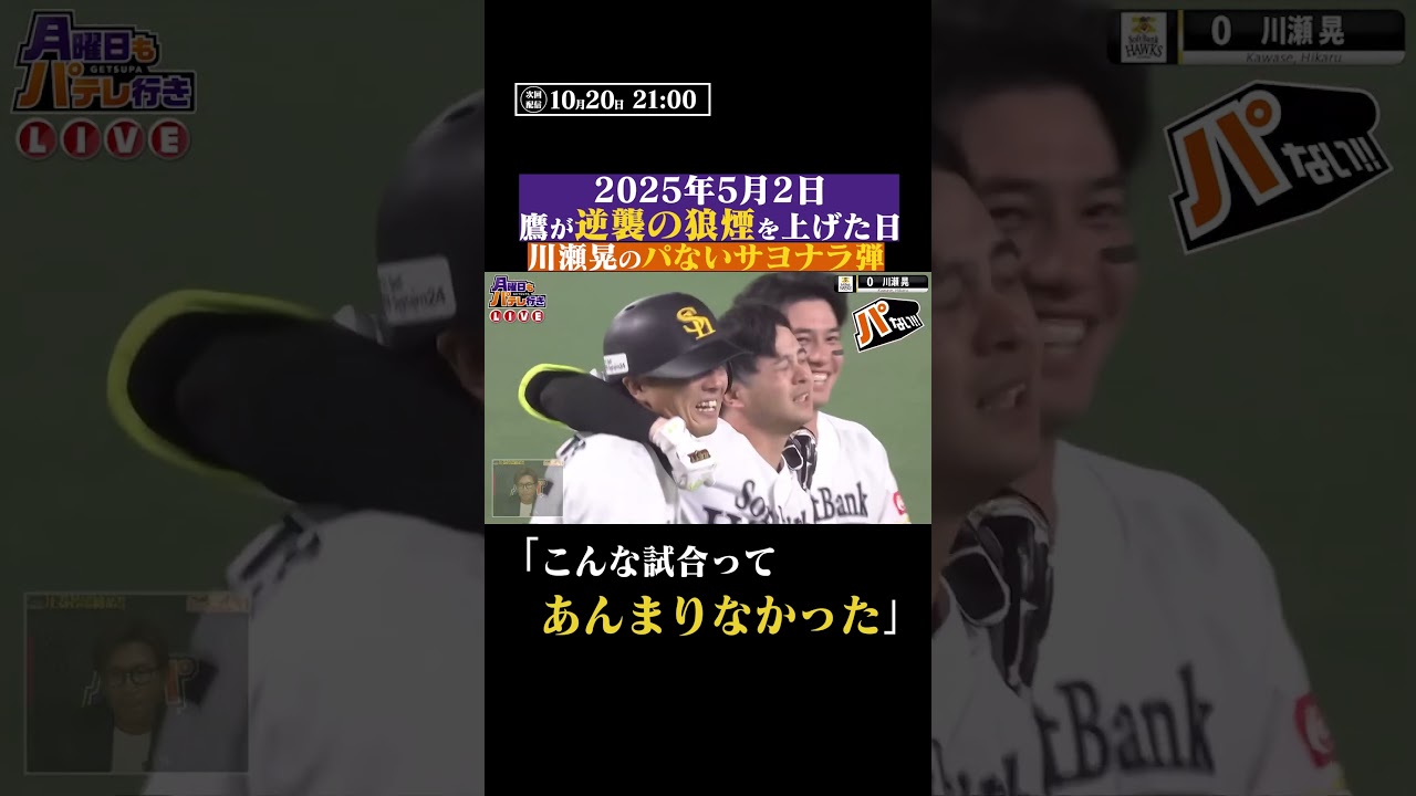 いや、こんな試合ってあんまりなかったなと思って。うん。 僕はホークスからになるんですけど、やっぱりこう最初ホークス下まで行ってたんですよ。 はい。 で、連敗とかもあった中、そこをやっぱりこうチームね、なんて言うんですかね、あの優勝まで導いたキーのなる試合ってあの監督も言ってましたけど はい。 もう川瀬選手の はい。さよならだ。 これ 9回2アウトからですよ。 みんなが繋いで繋いで最後ね、選手がこう振り抜いて決めたんですけど、こんな試合ってあんまりなかったなと思って。 うん。 これ今シーズン流れ変えた試合にもなりましたからね。 いや、もうもちろんですね。 ね、これ負けたらあのね、シーズンで最のそのあの連敗になってましたからそれもね、あのしのげたっていうのもそうだし、こっからまた連勝っていうところがあって、で、もう右肩上がりに上がってったっていうことなんで、 ま、彼のね、本当にもう今年何度もいろんな チャンスで打ってた、あの、ま、趣味もそうですけど はい。 ま、バッティングっていうところ、あの、印象に残る非常にいいプレーというのがたくさんあったなと思う中での [音楽] 1つですかね。あります。