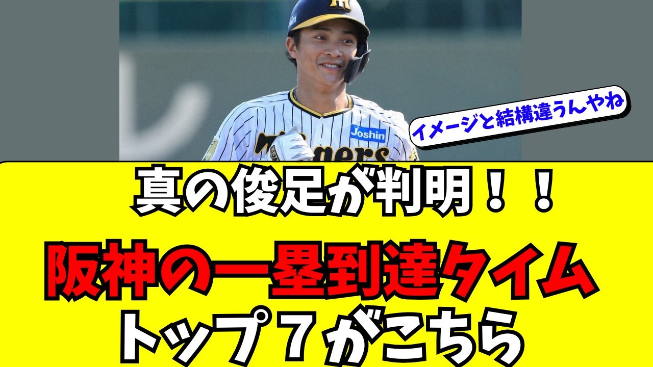 阪神タイガースの本物の瞬速が判明。 2025年1塁到達タイムトップ7見て いきたいと思います。 第7位が前川選手。2024年は2割6 部林ホームラン4本OPS697をマーク しました。今シーズンは完全なる レギュラーとして期待されたんですが 出出しこそ良かったものの5月以降に 大きく失速してしまいました。ただ9月は 復見せましたし、来シーズンは初の規定 打席到達に期待したいところです。盗塁数 で見ると実は通算で1つもないんです けれども、それでも1塁到達タイムで見る と遅い数字ではありません。NPBの公式 アプリNPBプで2025年シーズンの1 塁到達最高タイム。こちらを見ていきます 。基本的には右バッターよりも左バッター の方が0.2秒ぐらい早くなるという風に 言われていて、そして最高タイムなので 基本的には試合にたくさん出ている人の方 がこう思考回数が多いのでタイムも良く なりやすいという傾向があります。純粋な スプリントスピードこちらがですね.時速 31.2kmです。そしてタイムが 4.09秒で第7位。速度が時速 31.2kmというのは阪神の中でもそこ まで早い方ではないんですが左バッターで あるということもあって1塁到達は最高 4.09秒となっています。では続いて ですね、第6位は崖っぷチのあの選手と いうことでこちらを見ていきます。 第6位は島田選手でした。盗塁数は 2022年に21個決めているんですが、 そっからですね、年々減少している状況で はあります。元々この島田選手はですね、 中学時代から陸場でですね、100m11 秒01を記録したほどの瞬速の選手で、 やはりプロに入ってからも足の速さを 生かしたプレイが目立っています。 2024年は2割7部、5輪で出塁率3割 6部、3輪をマークしました。ただ 今シーズンは守備であったり総塁面のミス なんかもあったりして崖けっぷの立場に なっています。スピードは32.6km。 そしてタイムが4.02秒が最高で6位 です。正直島田選手のタイプですと、もう 少し早い、ま、3秒台は軽く出すのかなと 思ったんですが、意外と4秒台という数字 で、ま、打席数が少なかったこともタイム が伸びなかった要因なのかなと思います。 では続いてですね、こっから3秒台を マークする選手たち見ていきたいと思い ます。 第5位が地下本選手。4年連続の盗塁用を 獲得しています。前年はマイナスだった 守備勝も大きくプラスへと進化しています 。元々振り切るタイプの選手なのでタイム としては5位でこうそこまでダトで早いと いうわけではないんですがこの速度 スプリントという数見ますとチーム ナンバーワンで走るスピードに関しては やはりチームではかなり早い部類に入り ます。スピードが時速33.5km。 そしてタイムが3.94秒でチーム5位と いう数字になっています。どちらかという と走り打ちタイプの選手の方がやはりこの タイムっていうのはいい数字が出やすいと いう傾向が強いですね。では続いてですね 、第4位はブレークが期待されるあの選手 ということで見ていきたいと思います。 第4位は高テ選手ですね。2軍ではですね 、2024年は3塁打6本、そして盗塁も 23個決めている足が早い選手です。 そして新人でですね、プロに入ってきた時 30m層を測っているんですけれども、 こちらがですね、ドラフトで同期で入った 選手の中で1番早く、なおかつ近本選手を も超えるスピードだという風に注目され ました。超力もあって、ま、今年はホーム ランも2本出ていますし、2026年は スタメン出場の増加というところを狙う ブレイクを期待されるシーズンになります 。スピードが時速32.4km。そして1 塁到達タイムが3.92秒で第4位。ま、 本当に現状としては地下本選手のこの最高 タイムを超えるような数字を記録していて 、スタメンの機会をどんどん増やして盗塁 数もどんどん稼いでいって欲しいなという 風に期待しています。では続いてですね、 第3位はレギュラー候補のあの選手という ことでこちらについても見ていきたいと 思います。 第3位が小端選手。守備率9割78輪で、 ま、そんなにこうミスが全くないという わけではないですが、事故最高の守備率 記録していて確実性が出てきました。 そしてホームランも事故最多。これまでは シーズン1本出るのがやっとという感じ だったんですが、事故咲た5本のホーム ランを放っています。足も早い選手で早急 速度、肩も強い選手でこの早急のスピー ドっていうのもチームトップクラスの数字 を記録しています。150kmぐらいです ね。ま、ショートからボールを投げてい ます。来シーズンはショートのレギュラー 定着に期待がかかります。やっぱりき選手 のこう成績が落ちてきてそろそろこう若い ショートのレギュラーの選手が長くこう レギュラーを勝ち取っていくというのがま 世代交代っていうのが必要な時期に入って いますしこのおバ選手には期待したい ところです。スピードが時速32.9km でチーム5位。そして1塁到達タイムが 最高3.87秒でチーム3位ということに なっています。ここまでですね、やっぱり 1塁に近い左バッタ
