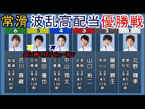 【常滑競艇】大波乱「優勝戦」。共に勝てばデビュー初V④中山翔太&⑤篠田優也VS①北野輝季②藤原碧生③山口裕二⑥吉川喜継