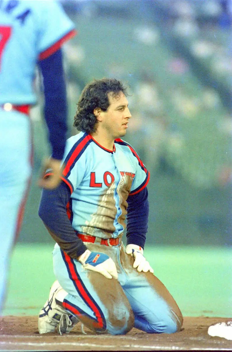89年7月19日、ライトゴロに終わったロッテ・ディアスは一塁ベース近くに座って悔しがる