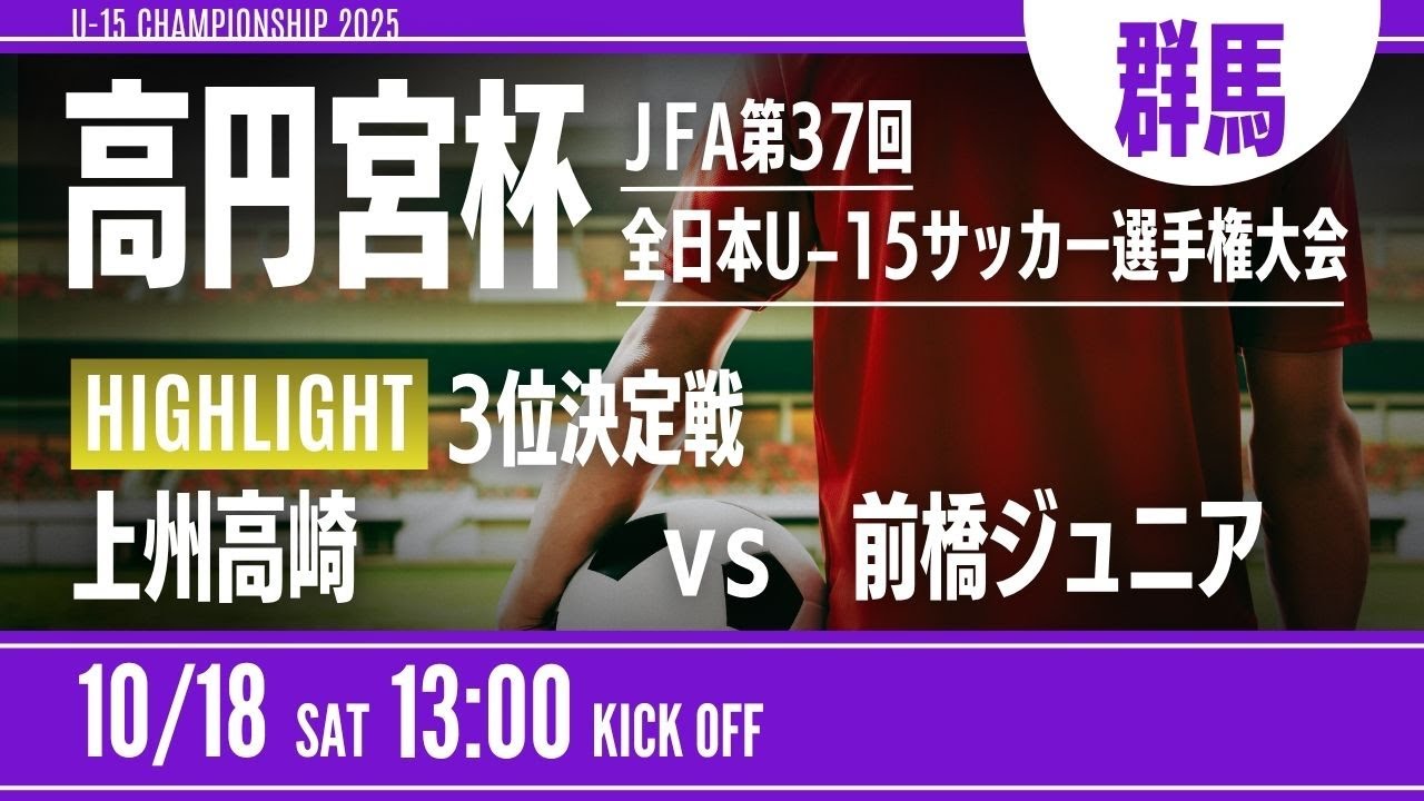 ハイライト【群馬高円宮杯 2025】3位決定戦 上州高崎 vs 前橋ジュニア 高円宮杯 JFA 第37回全日本U-15サッカー選手権大会 群馬県大会
