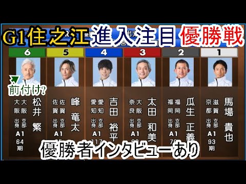 【G1住之江競艇】進入から大注目「優勝戦」①馬場貴也②瓜生正義③太田和美④吉田裕平⑤峰竜太⑥松井繁